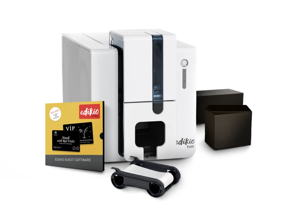 - From consumables to start printing as soon as you receive your solution: a white monochrome printing ribbon and a pack of black PVC cards.