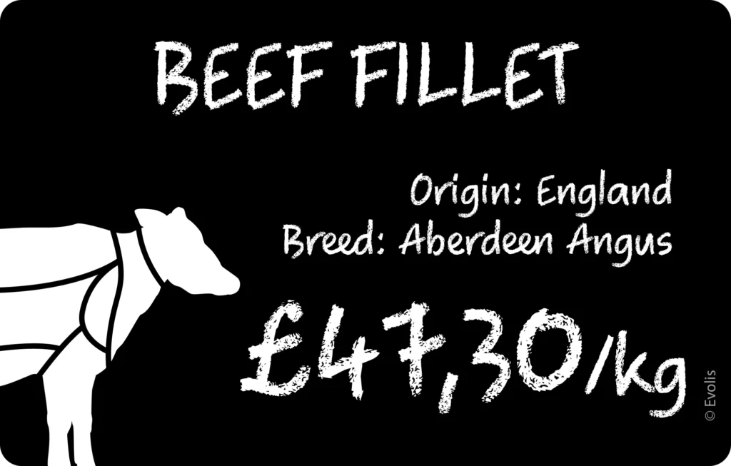 Beyond visual appeal, your butcher price tags must also communicate key regulatory information. Whether it’s meat origin, allergens, or precise product names, customers need clear and accessible details.