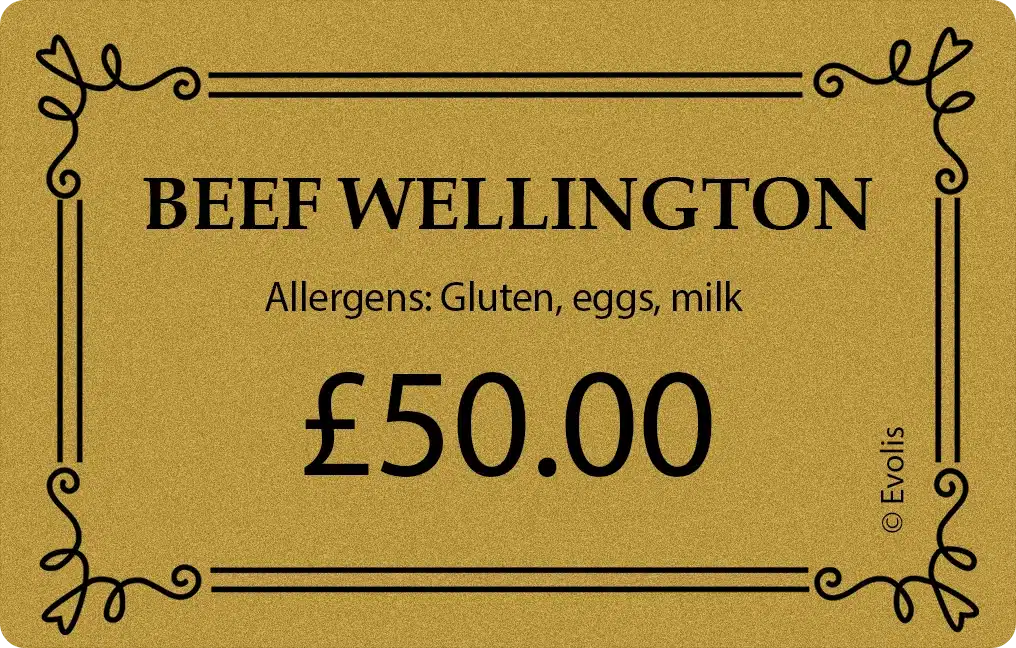 Beyond visual appeal, your butcher price tags must also communicate key regulatory information. Whether it’s meat origin, allergens, or precise product names, customers need clear and accessible details.