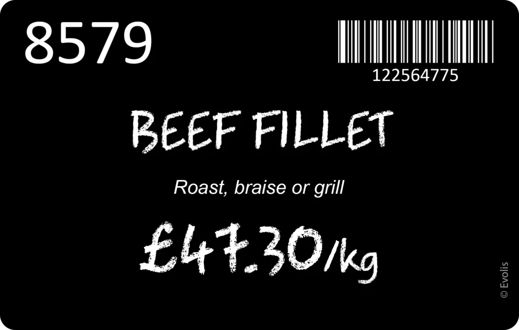 • User-friendly software to design and print your butcher price tags. In just a few clicks, update your product list and clearly display essential information on your meat tags (allergens, weight-based pricing, meat origin…). Each meat label can be fully customised in both content and layout, using templates tailored to your brand.