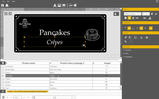 Edikio Guest is the only software dedicated to editing and printing buffet labels and all types of cards required by the hotel industry.