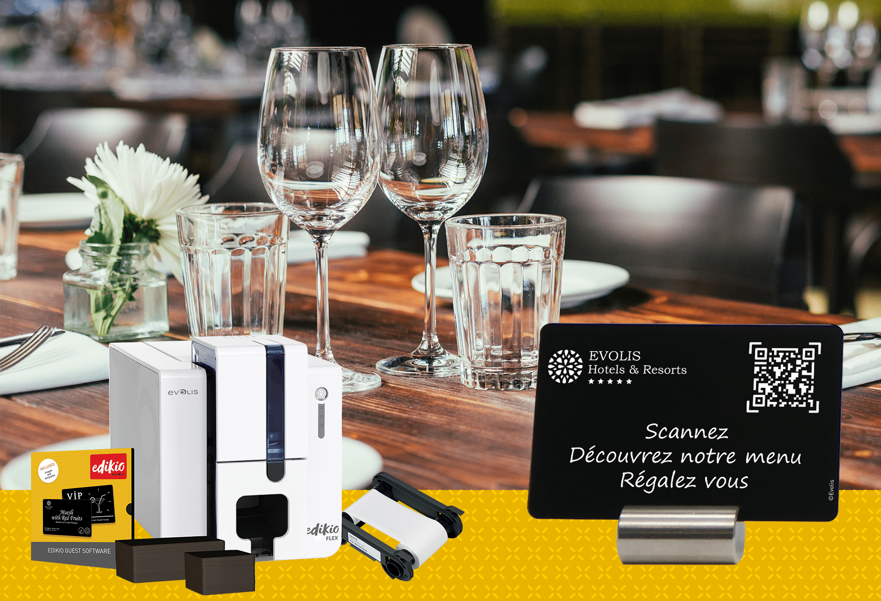 With our Edikio Guest printing solution, you can create and print your own restaurant QR code card on your own! The printers Edikio Guest Access and Edikio Guest Flex The high quality of the print also guarantees optimised accuracy for code reading by smartphones.