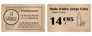 - Price tags or in-store presentation