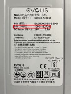 *From the serial number 10001152726. To find your serial number: go to the bottom of your Access! There you’ll find a label and the S/N indication that corresponds to your printer’s serial number: