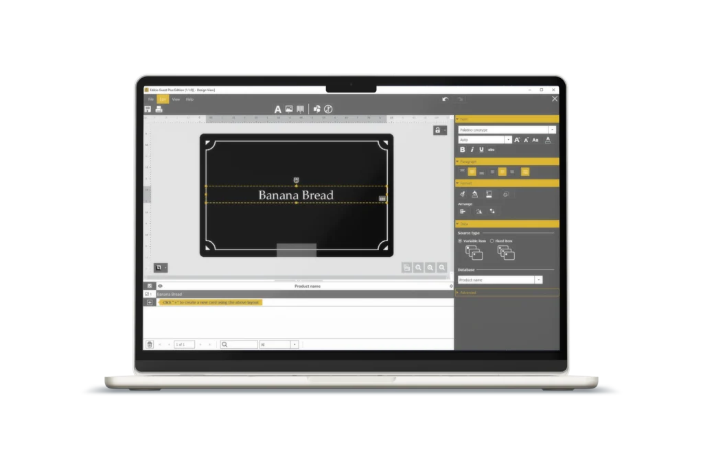 - Simultaneous display of your product list and label preview, automatically updated when data changes