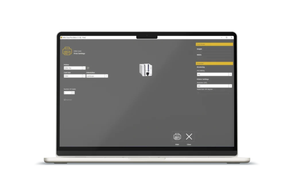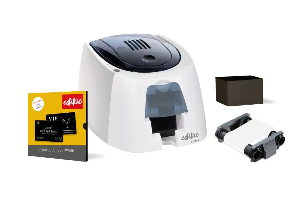 Edikio Access Guest is the most affordable all-in-one solution to design and print your price tags on PVC cards. It is ideal for small-volume, single-sided printing needs. The Edikio Access Guest solution includes everything you need to start printing immediately: