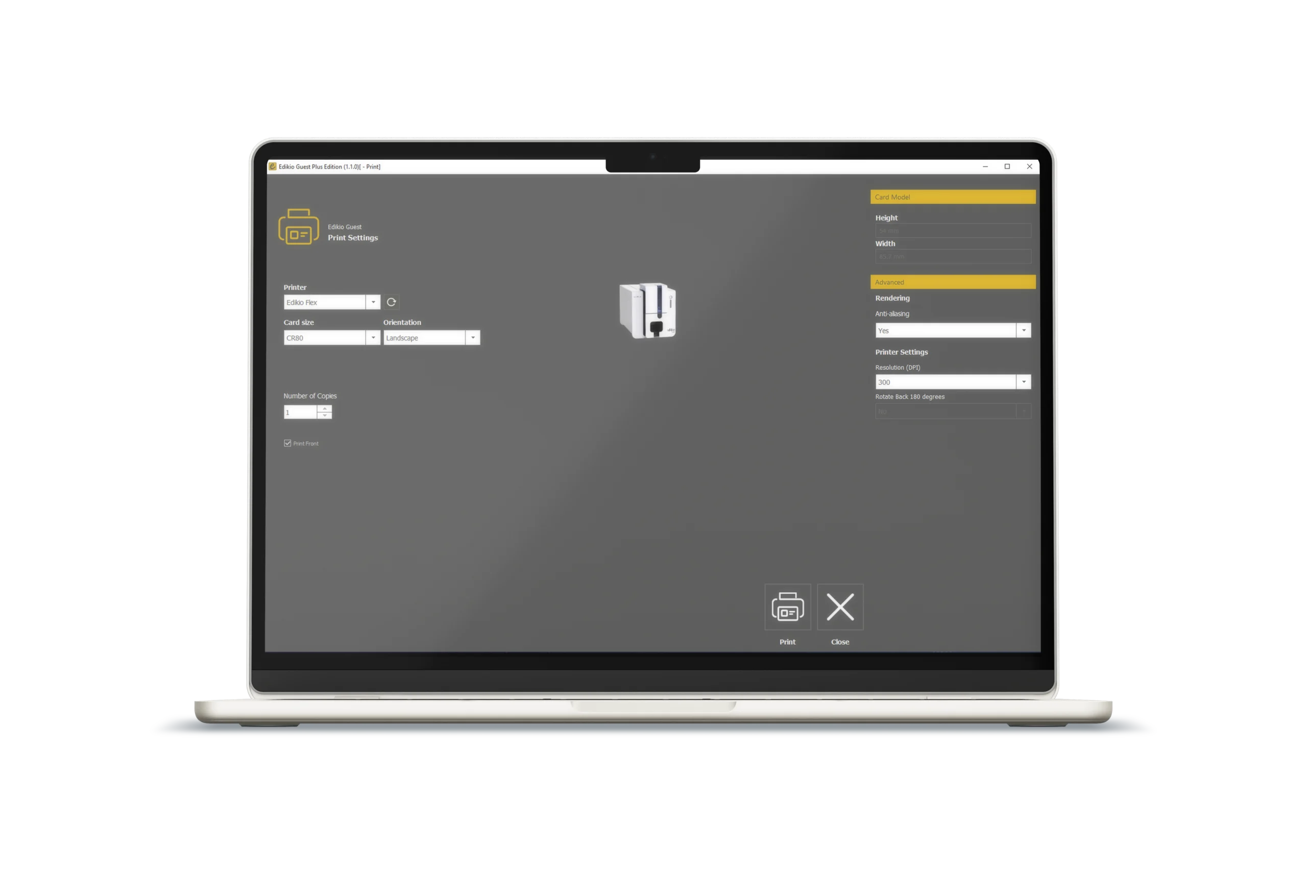 Edikio Access Guest is the most affordable all-in-one solution to design and print your price tags on PVC cards. It is ideal for small-volume, single-sided printing needs. The Edikio Access Guest solution includes everything you need to start printing immediately: