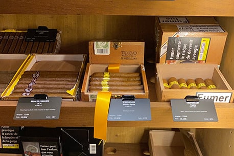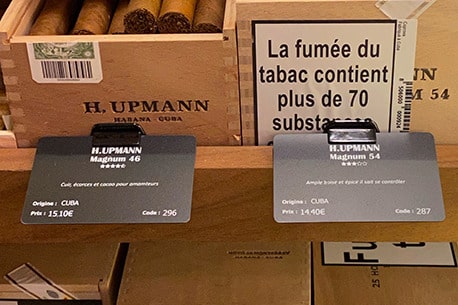 Price labels tailored to the cigar cellar at the ‘Le Cigare et la Plume’ shop